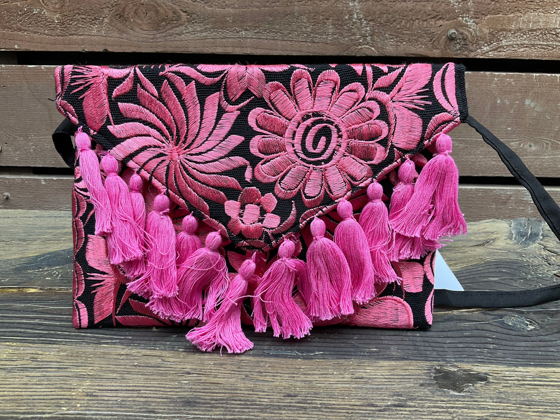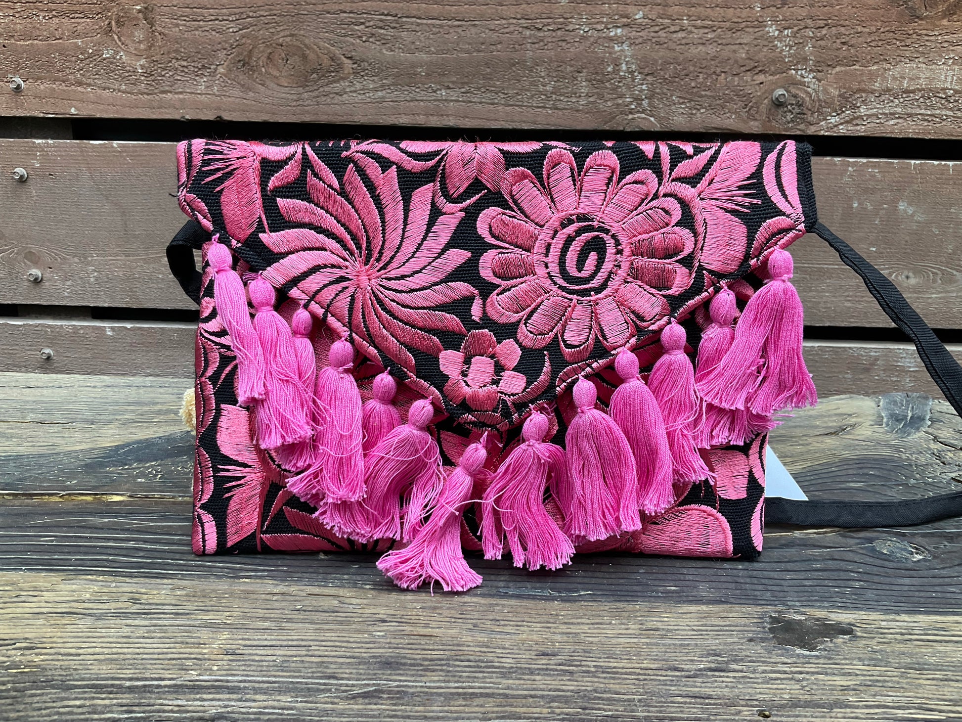Gorgeous handmade embroidered clutches hand crafted by Mexican artisans. Vibrant colors to style day and night outfits.